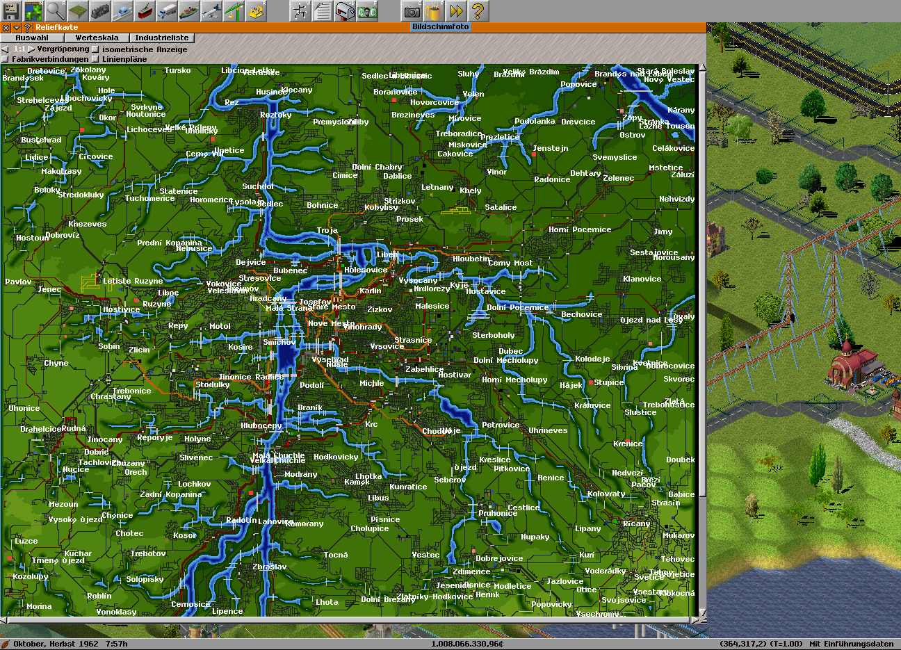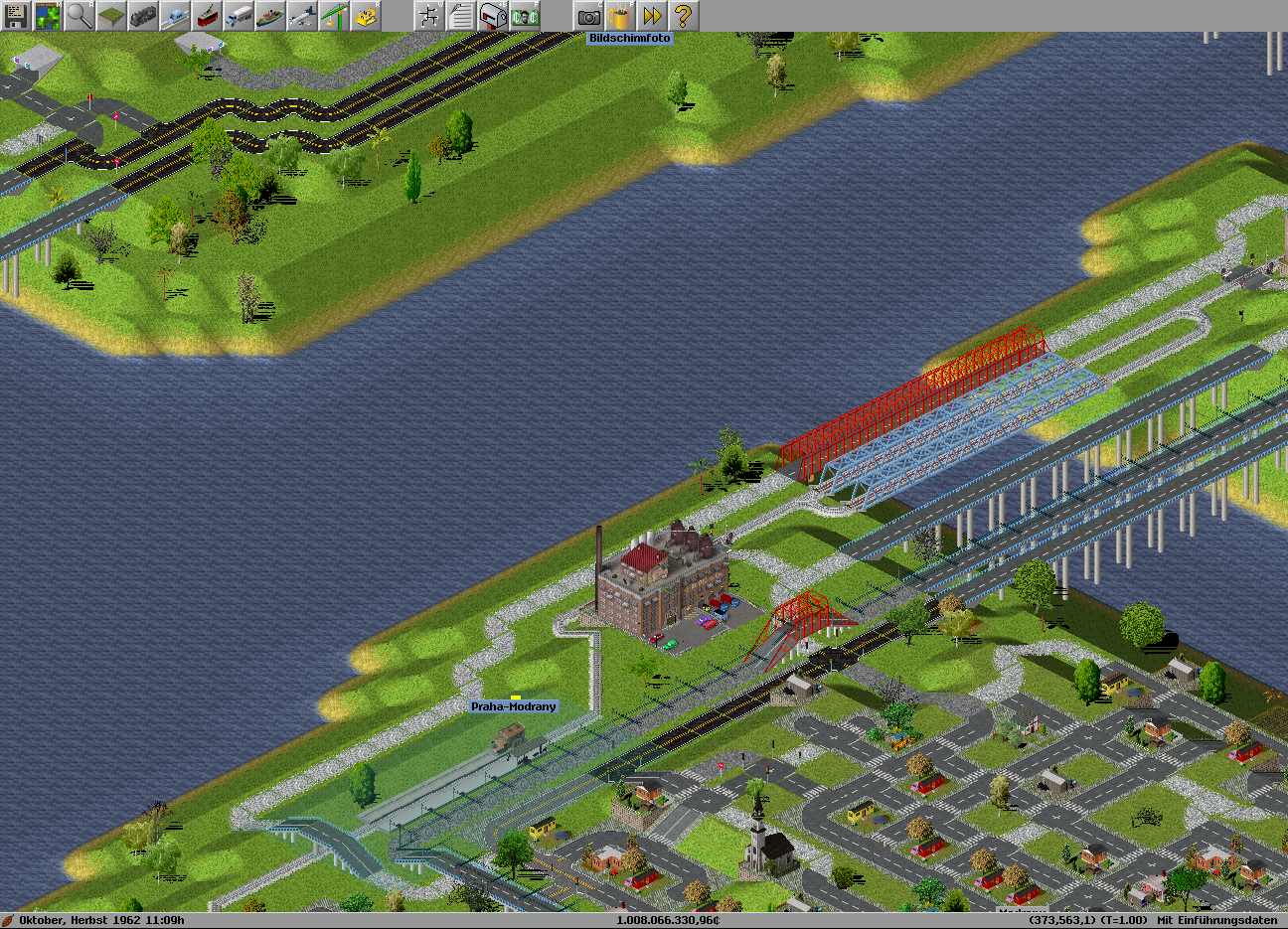 Die Version enthält alle Städte, Eisenbahnstrecken, Straßen, Ampeln, Industrien, Sehenswürdigkeiten des Großraums Prag.