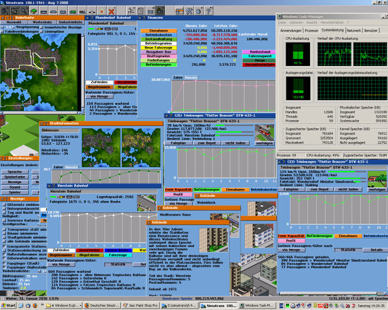 Übrigens, der größte Resourcenfresser ist meiner Meinung nach das Finanzfenster, wegen der vielfältigen Berechnungen, die nur nötig sind, wenn es offen ist anstatt einmal pro Monat.