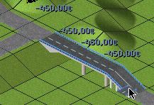 Wie im Screenshot zu sehen, habe ich in eine der schon vorhandenen Straßen im Sammelspiel ein "Loch" gerissen und versuche stattdessen, dort eine Straßenbrücke zu bauen. Geht aber so nicht.