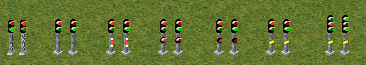 Ich habe mich mal rangesetzt und ein paar Varianten des neuen "Vorsignals" gezeichnet. Ganz links ist noch das derzeitige Standardsignal zu sehen. Gleich rechts daneben mal mein neuer Vorschlag und alle weiteren sind dann Vorschläge, wie das neue Vorsignal aussehen könnte. Ich habe mich dabei auf Varianten beschränkt, die auch noch gut in der rückwärtigen Ansicht, eindeutig als einfaches Signal oder Vorsignal, zu unterscheiden sind.