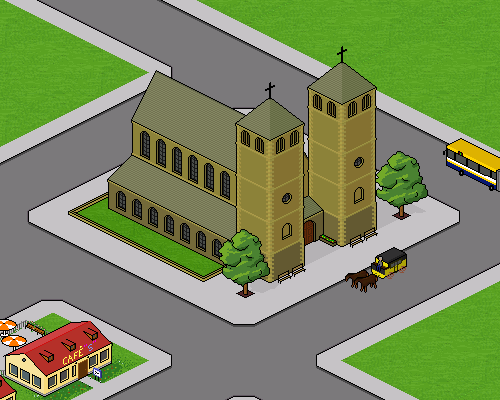 Zu erstmal die Kirche sieht gut aus. Aber ich bin mir nicht sicher welcher Baustil hier abgebildet sein soll. Für einen romanischen Typ sind die Fenster zu groß und für einen gotischen Bau sind die Fenster zu kurz.