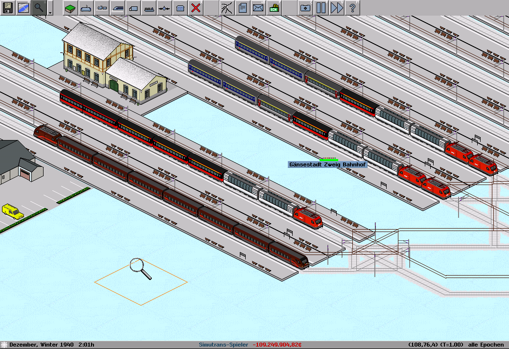 Ich würde vielleicht noch die Daten verändern. Im Moment ist es so, dass die Waggons alle (bis auf einen) 1.68 im Betrieb kosten und alle 102 Passagiere laden. Vielleicht die erste Klasse Waggons mit weniger Passagieren (Abteile) und teurer machen?