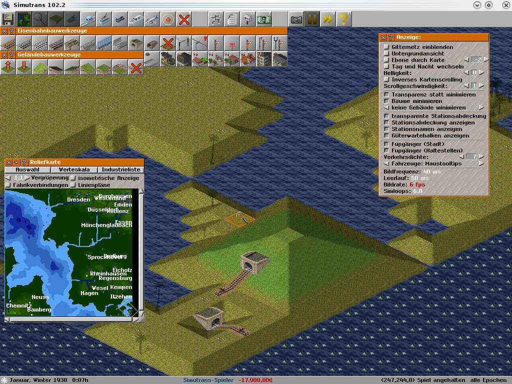 Vielen Dank. Nun klappt es auch bei mir. Funktioniert aber auch am normalen Land. Somit ist es eine sinnvolle Ergänzung für U-Bahnen! Und zu den Kosten: Man kann auch zweimal nebeneinander das Land absenken und den Tunnel ein Feld von Meer bauen. Dann halten sich die Kosten stark in Grenzen! Siehe dazu auch den Anhang.