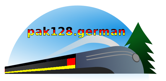 Ich komme noch mal auf das Logo zurück. Ich habe mal zwei Skizzen (!!!) aus dem 250x166 px kleinen Logo gepixelt. Die eine hat eine 128 am Fahrzeugbug, die andere an der Seite. Außerdem wurden aus zwei Seitenstreifen drei für Schwarz, Rot, Gold. Wenn euch das gefällt, müsste man zum einen den Autor, stormoog, fragen, ob er damit einverstanden ist, und zum anderen mit einer großformatigen Vorlage arbeiten (ist vermutlich als Vektorgrafik angelegt, die er uns möglicherweise zur Verfügung stellt).