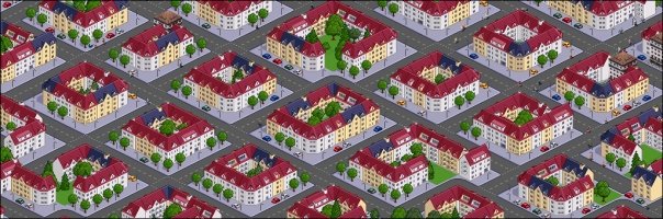 Jepp, ist der Park in der Mitte. Aber nur zur Probe. Tatsächlich platziert Simutrans das Gebäude später selbstständig. Mit entsprechenden City-Rules (keine Gebäude in zweiter Reihe) kann man so später echte Häuserzeilen betrachten!
