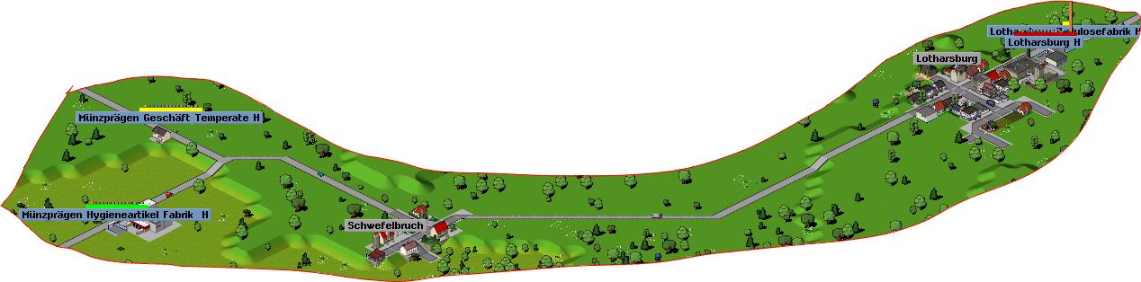 3. Ich habe unten mal ein Beispiel angehängt. Es gibt eine Zyllulosefabrik, eine Hygienefarik und ein Geschäft. Ich setzte 2 LKW á 12 Paletten zwischen der Zyllofabrik und der Hygienefabrik, sowie einen LKW á 10 Paletten zwischen Hygienefabrik und Geschäft ein. Alle LKW fahren rentabel und ich mache Gewinn aber trotzdem habe ich eine rote Zyllufabrik (LKW- Verladestaion + Lager (640)) und ein gelbes Geschäft.