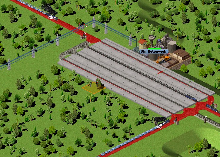 Vom Betonwerk holen 3 Züge Beton ab, 1 Gleis bleibt zur Anlieferung offen.