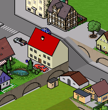 Auf dem Screenshot sieht man, wie der Ballon hinter dem Haus mit dem roten Dach fast komplett verschwindet. Beim Zusehen bekam man den Eindruck, als würde er wie ein Fahrzeug auf dem Boden umherfahren.