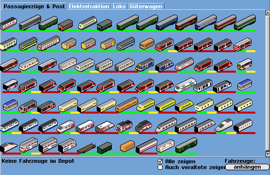 Eine Übersicht über das Eisenbahndepot im 96er Comic für die nächste Version. Wer findet bei der Menge der Fahrzeuge die Alten bzw. Neuen?