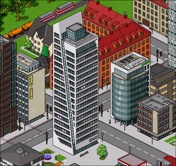 Fürs nächste Hochhaus könnte ich ja mal etwas völlig Eigenes gestalten. Meistens habe ich Vorbilder, die ich der Kachelgröße angleiche und lasse zusätzlich noch eigene Sachen einfließen.