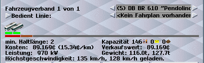 Habe den Zug neu gezeichnet sowie die Passagierkapazität geringfügig angepaßt (nach realen Daten zu dem Zug). Betriebskosten wurden proportional zur neuen Kapazität ebenfalls angepaßt.