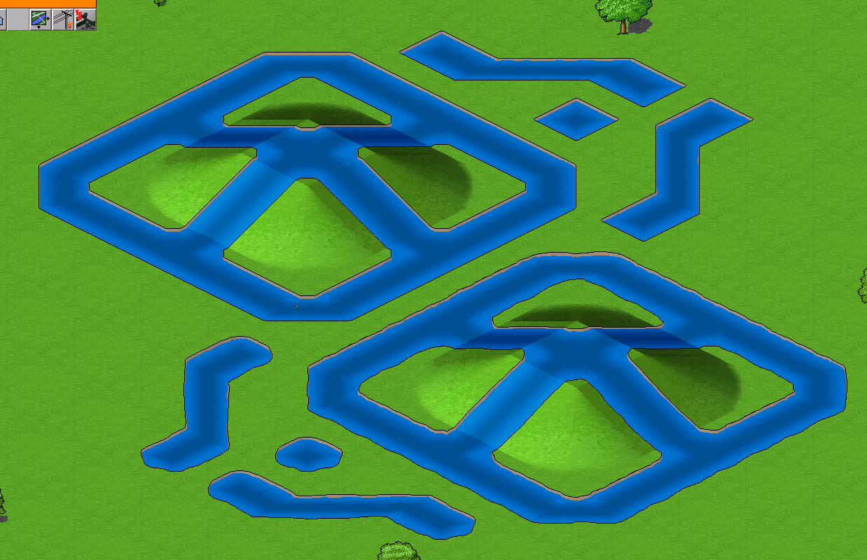 Da es bisher nur einen breiten blauen Streifen gab habe ich mich mal darangesetzt, einen richtigen Fluss sowie einen Kanal anzufertigen. Ich denke, es ist mir gelungen Big Grin