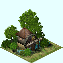 Ok, hier ist eine, wenn auch nur eine kleine Wassermühle. Aber in die Timeline vor 1930 sollte sie ganz gut reinpassen. Wenn einmal Flüsse zum Set dazu kommen, bauen wir sie um. Auch wenn für Fabriken und Industrie irgendwann mal eine Timeline geschaffen wird, hängen wir da ein kleines Sägewerk drann. Smile