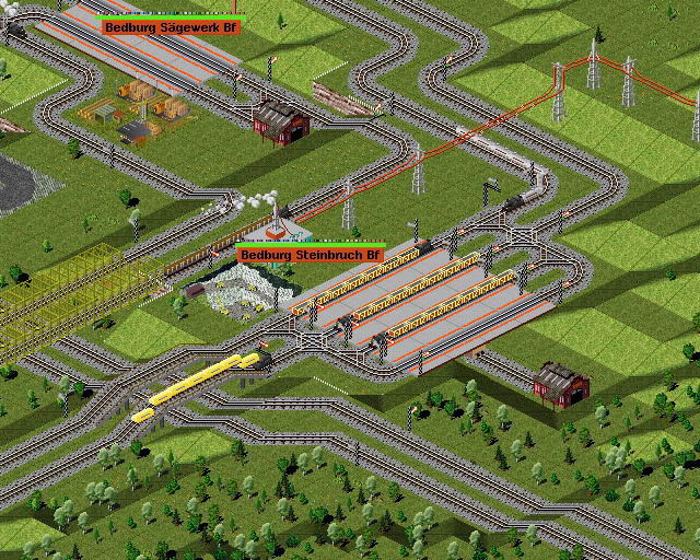 Wie man sieht, stehen 2 Züge am Signal obwohl ein Gleis frei ist, beide Zügen sollen nur durchfahren.