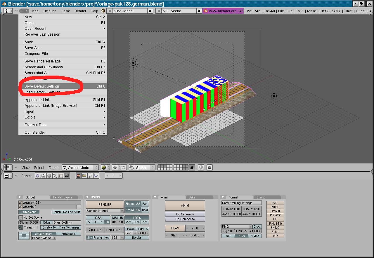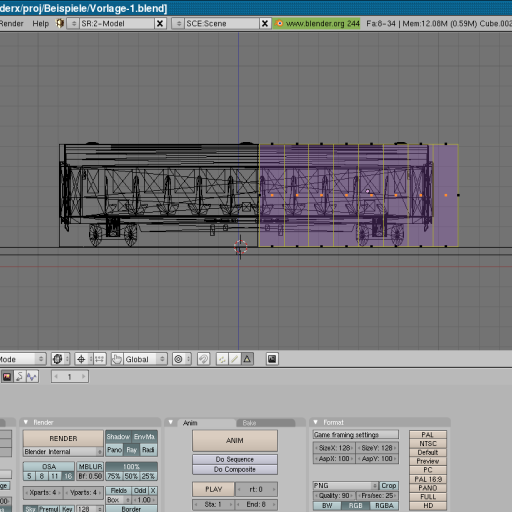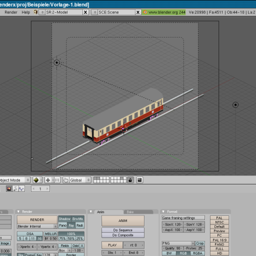 Falls jemand Interesse hat, kann ich meine Blender-Vorlage und eventuell zusätzliche Python-Programme zur Verfügung stellen. Damit kann man die Objekte in einem Rutsch in die entsprechenden Ansichten drehen. Hier sind ein paar Screenshots, den Prozess verdeutlichen. Ich habe es an einen IC-Wagen (beige-rot) verifiziert.