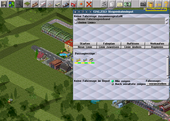 Im Tram-Depot werden nur Anhänger, aber keine Triebwagen gezeigt, so daß man keine Straßenbahnzüge zusammenstellen kann. (siehe Bild)