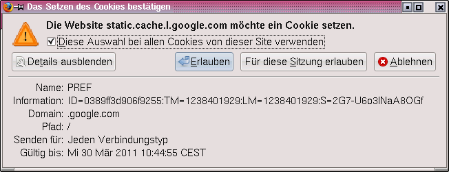 Aus heiterem Himmel wollte google.com dieses Cookie installieren...wird dieses Forum oder werniemans Nightly-Seite zur Spionage missbraucht?