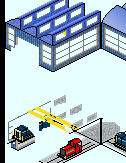 Das Depot besteht aus 2 zusammengehörenden Grafiken, es sind keine verschiedenen Gebäude. Eine Grafik ist der Hintergrund, die andere Vordergrund. Die trennung ist nötig, damit der Zug durch das Tor fährt und nicht durch die Wand. Die Hintergrundgrafik wird vom ein- bzw. ausfahrenden Zug überdeckt. Die Vordergrundgrafik überdeckt den Hintergrund und den Zug.