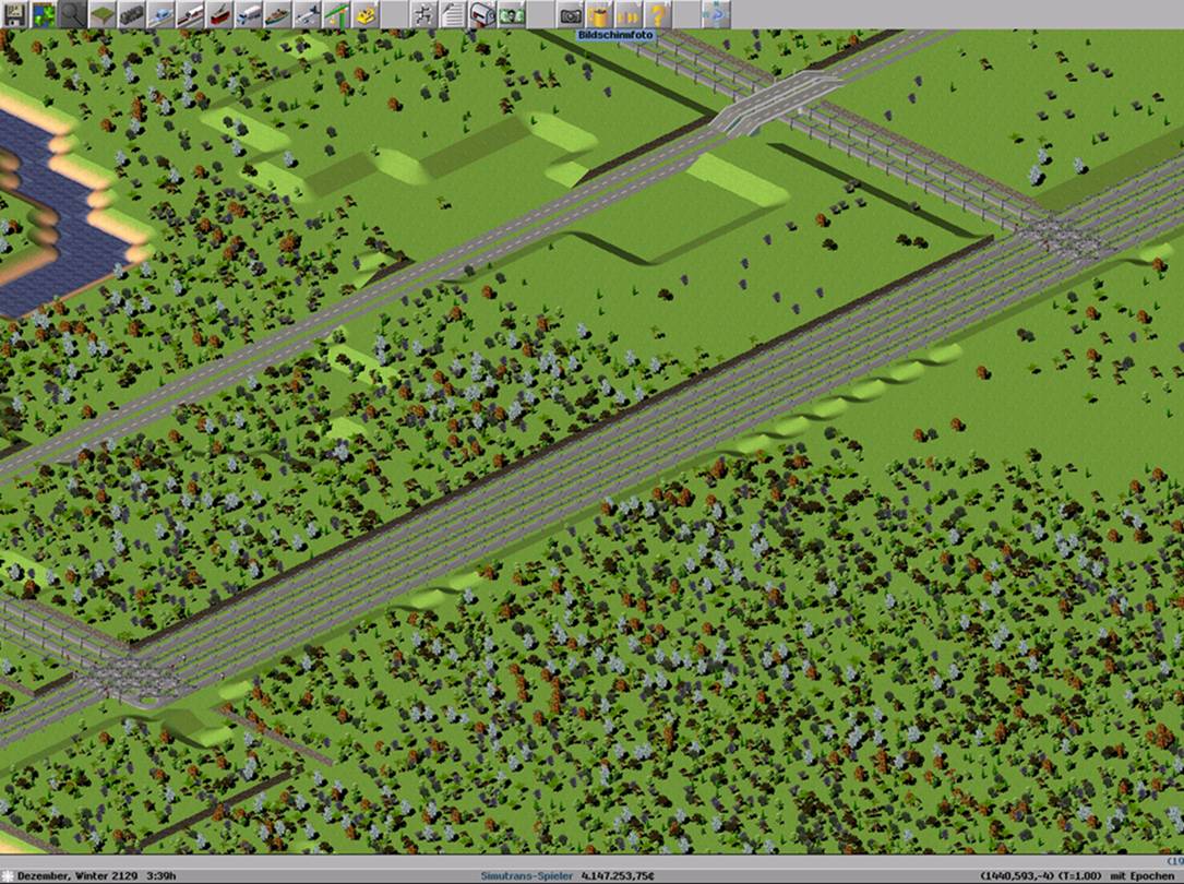 2. Es wird sich eh bei dir stauen, da die Zuege bei den Kreuzungen ueber die "Gegenfahrbahn" druueber muessen und daher der Gegenverkehr stockt. Versuch doch einmal, "kreuzungsfrei" - also mit Bruecken und Tunneln zu bauen; Anregungen dazu bietet jedes Autobahnkreuz - bzw. - Dreieck. Das duerfte bei deinem Screenshot schon wesentlich mehr bringen als der 4-spurige Ausbau.