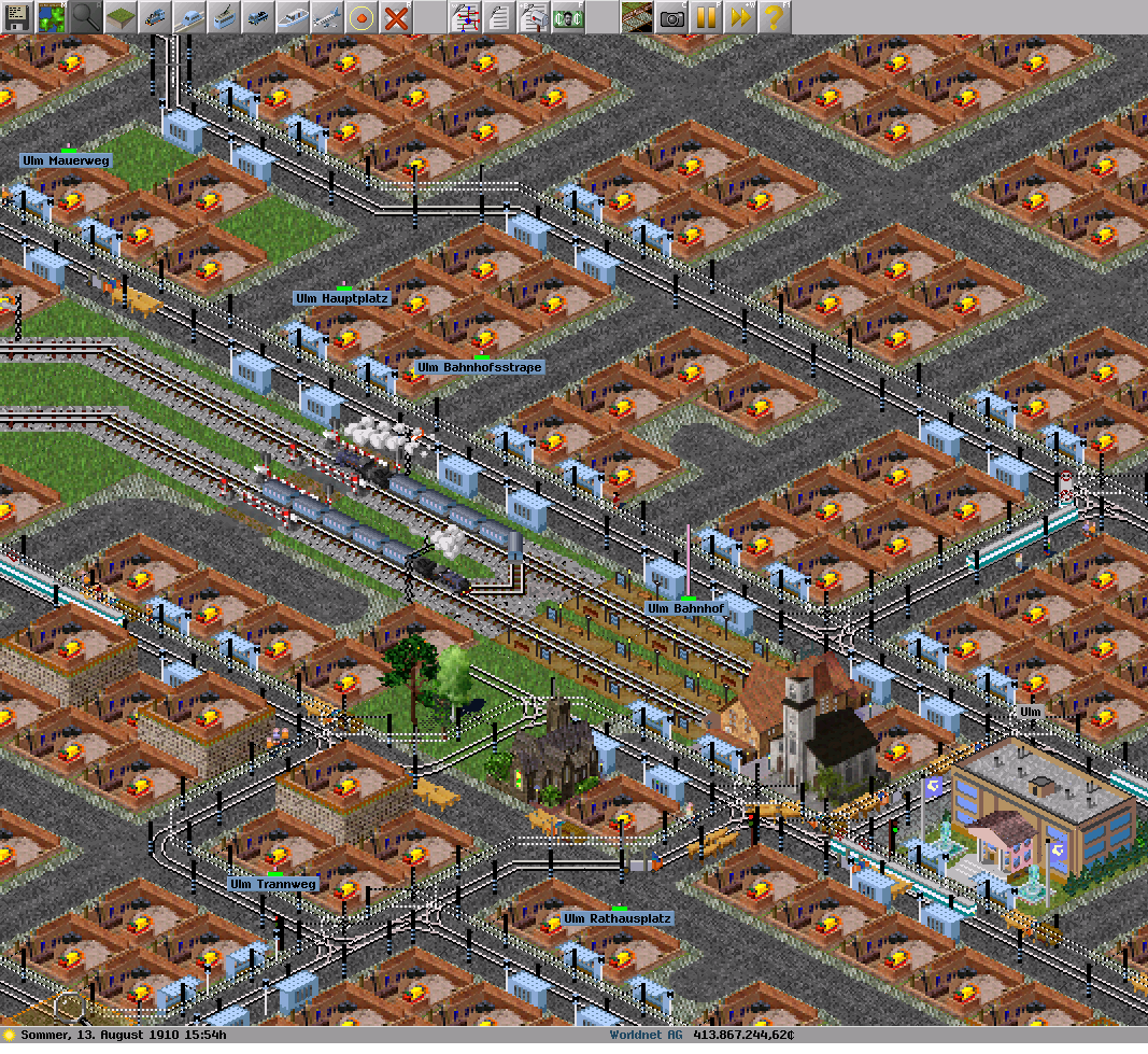 Der Bahnhofsbau ist natürlich so eine Sache: Da sehen die Simutransbahnhöfe - sofern man sie nur nach ihrer Funktionalität ausbaut - allein schon deshalb nicht so realistisch aus, weil im Spiel keine Notwendigkeit für z.B. Abstellgleise besteht - im RL sind Bahnhöfe ohne solche kaum denkbar. Weiterhin ist es ja auch so, dass heutzutage sehr viele Bahnhöfe etliche ungenutzte Gleise haben, sowas ist bei Simutrans ja auch eher selten (hier würde ich übrigens gerne mal einen alten Vorschlag aufwärmen, nachdem einige Zeit ungenutzte Verkehrswege langsam überwuchert werden bzw. dass man die Möglichkeit bekommt, Verkehrswege "stillzulegen", ohne sie gleich abreißen zu müssen).
