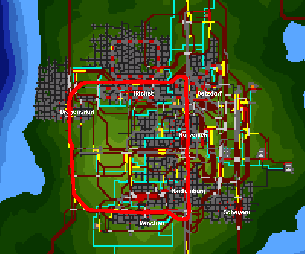 Ein Problem stellt fast Schon die Brauerei da, sie ist vorallem bekannt für ihr Fassbier, dementsprechend beliefert sie fast alle Gasthäuser und Märkte auf der Karte (13 Güterzuglinien halten hier), extra für die langsamen Züge mit dem Bierfässern wurde eine meist parallele Trasse gebaut um die schnelleren Züge auf den Strecken Nach Westen und Norden nicht zu stark zu behindern.