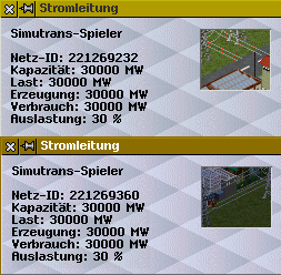 Ich bin neu hier im Forum, spiele aber seit einigen Jahren Simutrans. Jetzt habe ich seit einiger Zeit meine Version aktualisiert, finde besonders die Verbesserung mit den Überlandleitungen ziemlich gut. Jetzt ist aber meine Frage: Ich erzeugte weitmehr als 30000 MW und verbrauche auch weitmehr als 30000 MW in meinem Spielstand. Nun sagt mit die Anzeige, dass ich lediglich eine Auslastung von rund 30% habe (Ich nehme mal an, es handelt sich um den Anteil, der genutzt wird von meinem Erzeugten, oder es könnte auch die gesamte Netzauslastung sein. Das ist leider sehr ungenau aufgeführt.