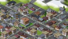 Als erste zeigt die Alpine Zone das Ergebnis dieses Konzeptes. Alle Gebäude sind für diese Zone erstellt und erscheinen nur hier, einschließlich der regional angepassten Fabrikgebäude-Grafiken (Buchhandel, Möbelhaus, Tankstelle etc.).