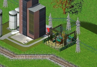 Da wir die Trafostationen aus dem Standard-Pak 128 übernommen haben, gibt es zwei Typen, der eine, der am Kraftwerk gebaut wird und der andere, der neben eine Fabrik gesetzt wird (macht ST automatisch). Auch für diesen zweiten Typ habe ich keine Veränderung feststellen können.