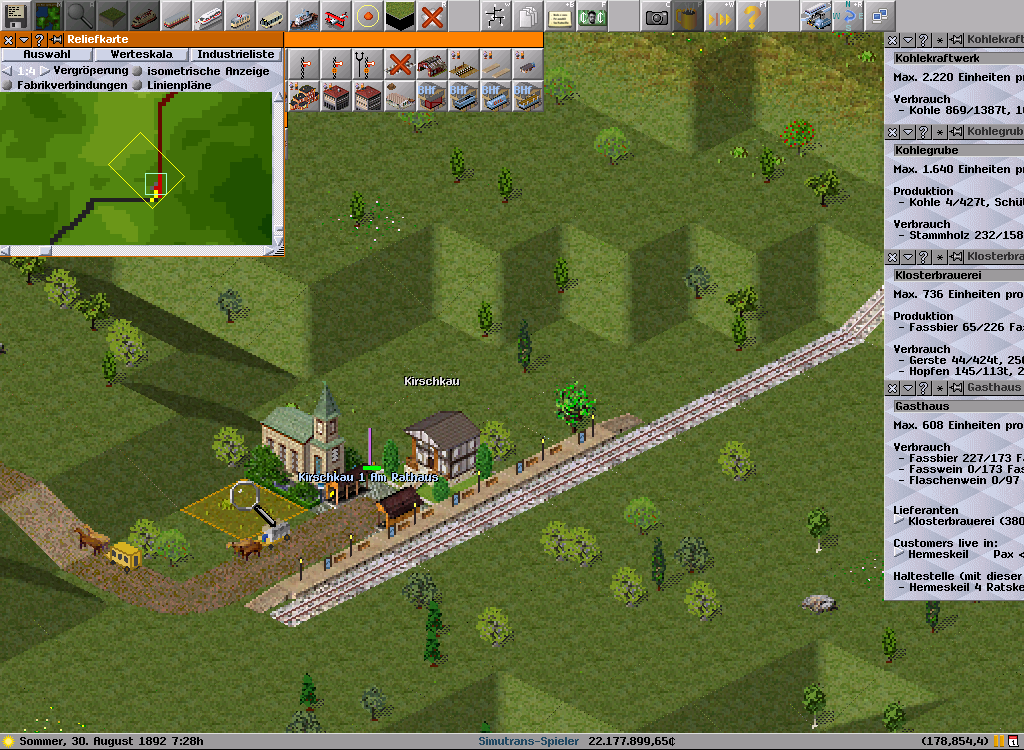 die so ziemlich einzig spieltechnische Lösung ist ein deutliches Umplatzieren des Bahnhofs, denke ich. Versuchs doch, den nördlich des Rathauses zu bauen, auch wenn das streckentechnisch ungünstig wird