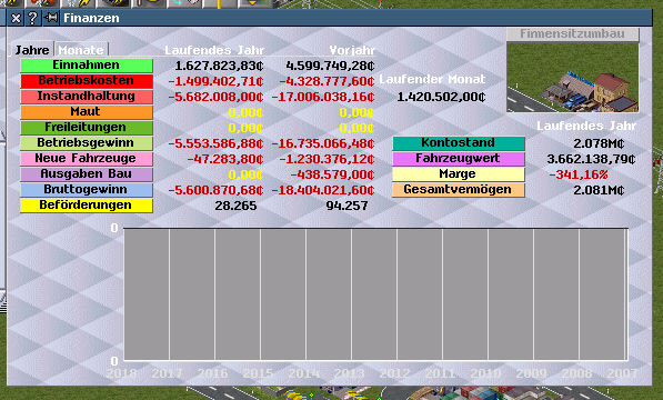 Ist irgendwie seltsam, meine Fahrzeuge machen alle Gewinn, aber mein Geld sinkt in Folge von Instandhaltungskosten rapide nach unten.