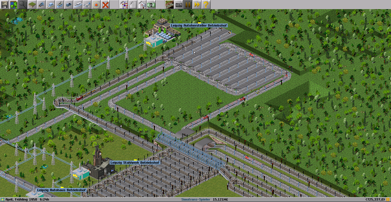 Ich hatte in meinem pak128 Spiel Züge der Länge 12 zwischen allen Bahnhöfen außer den kleinsten eingesetzt, die großen Umschlagsbahnhöfe hierfür waren der blanke Alptraum und das obwohl jede Frachtsorte ihren eigenen Bahnhof bekommen hatte. Erschreckenderweise ist deshalb pak128 für mich auch gestorben, da es die langen Züge praktisch erzwingt.