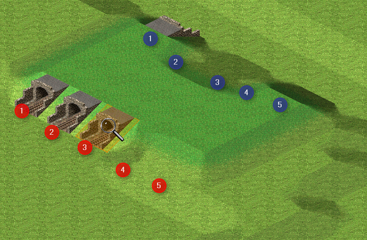 Tunnel 5 hätte zwar auch die richtige Geländehöhe, aber zu beiden Seiten ist im unteren Bereich noch eine halbe Höhenstufe im Weg. Funktioniert also auch nicht.