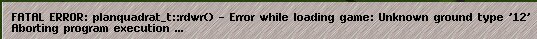 Ich kann plötzlich meine zwei letzten Spielstände nicht mehr laden. Sobald ich einen der beiden auswähle, erscheint die Fehlermeldung (siehe Anhang) und das Programm wird geschlossen. Ältere Stände werden geladen und neue Spiele kann ich generieren und auch speichern/laden. Weiß jemand Rat. Wäre schade um die ganze Arbeit. ;(